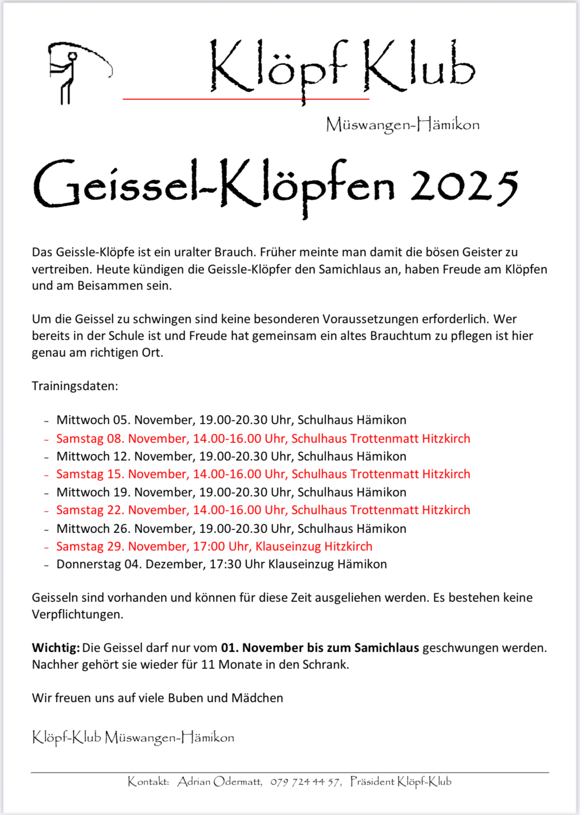 An dieser Stelle werden im Oktober jeweils aktuelle Infos zum Samichlauseinzug, zu den Hausbesuchen und allen weiteren Aktivitäten des Samichlauses bekannt gegeben.